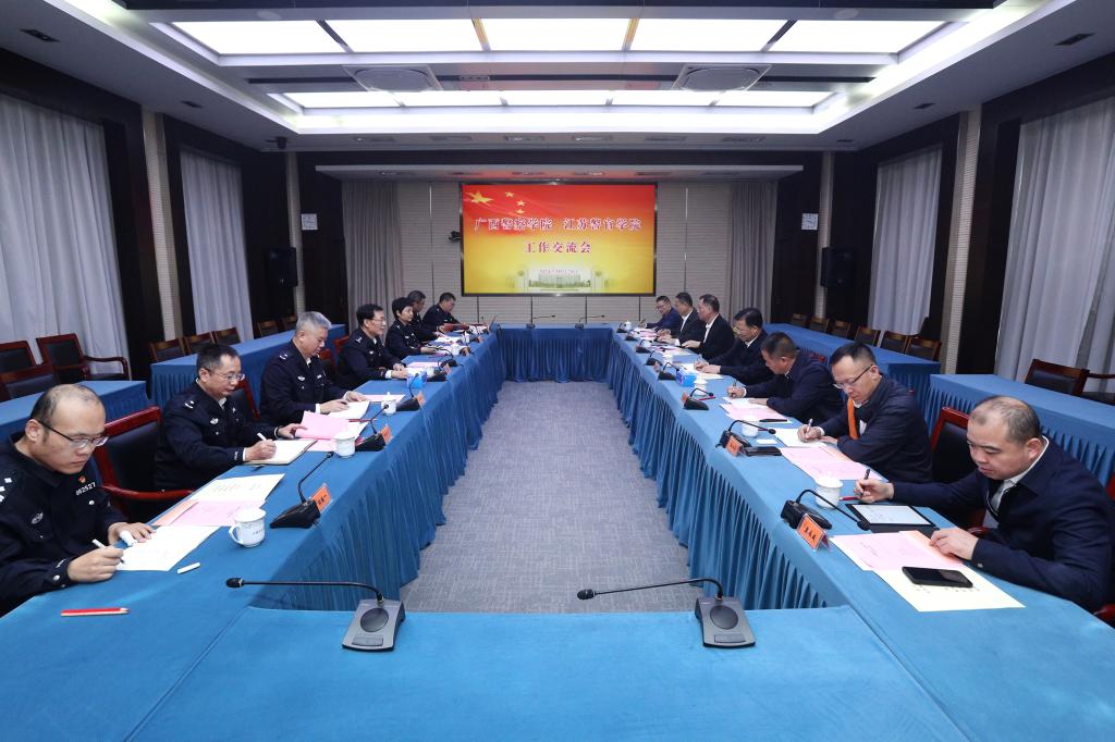 1028日,广西警察学院党委书记彭顺克一行来校考察调研。省公安厅党委委员、学院党委书记夏存喜,学院党委副书记、院长黄进,党委副书记陈卫,党委委员、副院长刘蔚文接待考察组一行,并开展了工作交流。党办(院办)、教务处、学生处、侦查系、刑技系等部门负责人参加座谈交流。