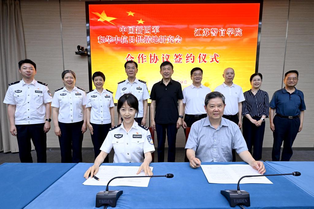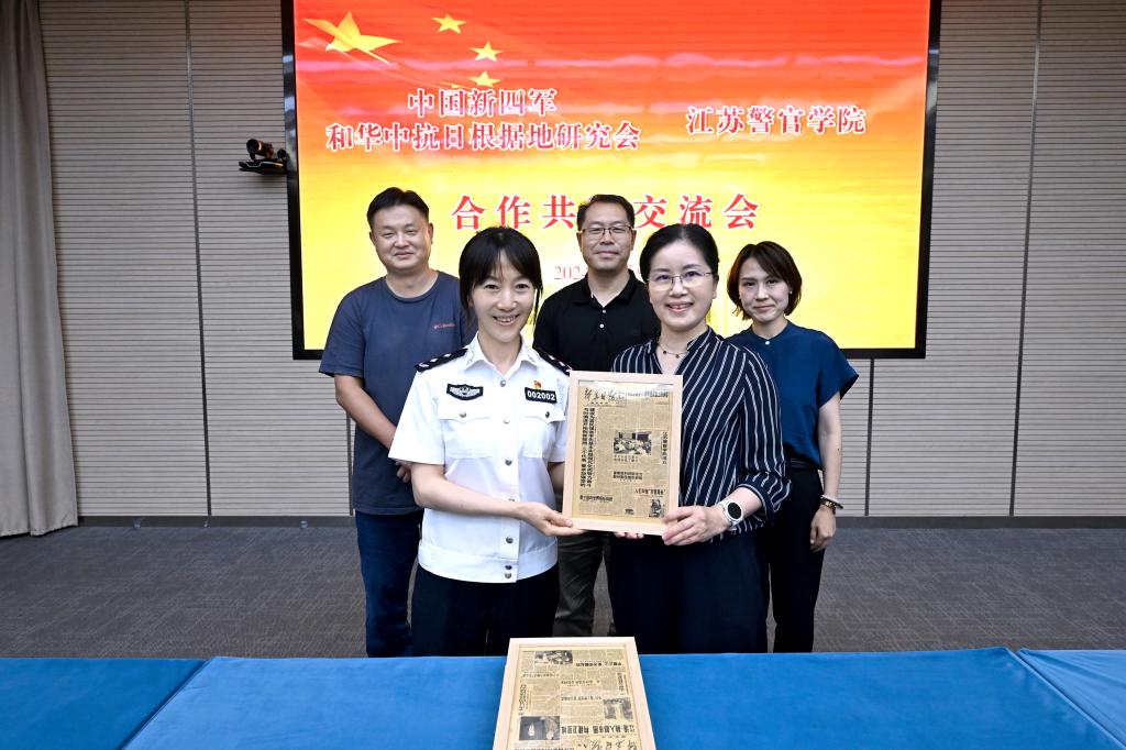 7月9日,学院与中国新四军和华中抗日根据地研究会开展共建交流活动并签订合作协议。中国新四军和华中抗日根据地研究会会长、江苏省军区原司令员于中海率研究会驻会领导和专家一行到学院座谈交流。研究会咨询组领导、山东省原副省长、省公安厅原厅长徐珠宝代表研究会向学院赠送书籍。新华日报社副总编辑、中国新四军和华中抗日根据地研究会副会长钱丽萍参加活动并向学院赠送珍贵的载有学院重要校史新闻的《新华日报》。省公安厅党委委员、学院党委书记夏存喜,学院党委副书记、院长黄进参加活动。学院党委副书记陈卫主持交流会。