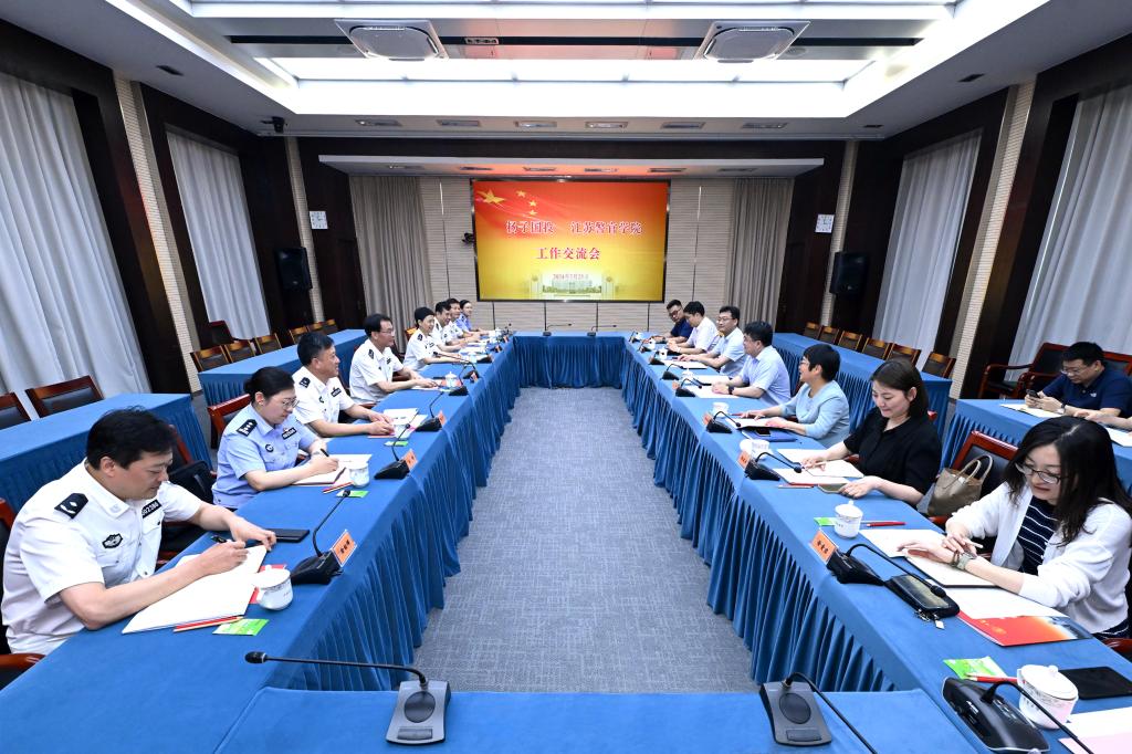 7月23日,扬子国投集团党委书记、董事长王伟一行来鸭脖考察调研,省公安厅党委委员、学院党委书记夏存喜和学院党委副书记陈卫,学院党委委员、教务处处长缪文升参加调研活动。