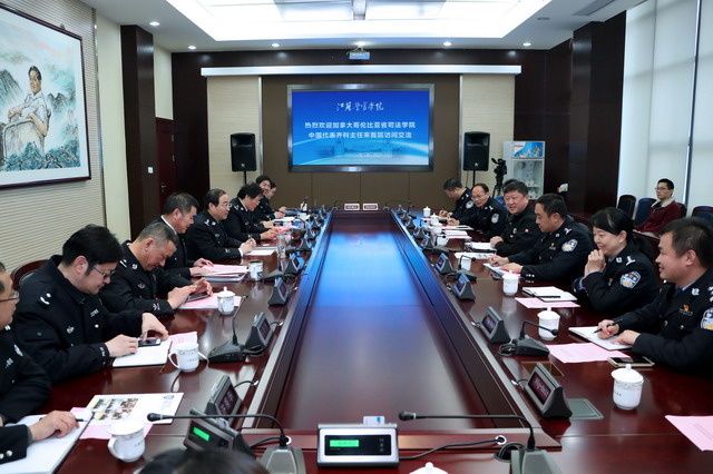 会上,张兰青院长首先对齐科先生的到访表示欢迎,对两院学生交流项目的顺利开展及取得的成效表达感谢,希望在学院建设“双一流”警院背景下,进一步深化双方合作内容、丰富合作形式。齐科先生介绍了学分班项目的开展情况,并对学院组织管理和参训学员给予高度评价。双方就进一步深化两院合作进行了磋商,并达成初步共识。