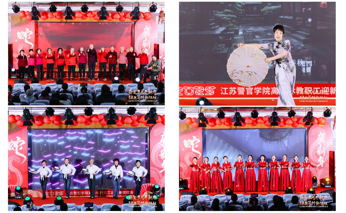 联欢会在大合唱《社会主义好/解放区的天》中拉开序幕,离退休教职工们用饱满的热情和嘹亮的歌声,表达了对祖国的美好祝福。独舞《等归人(伞舞)》、走秀《时尚之秀》、小合唱《苹果香》等精彩节目轮番上演,展现了老同志们多才多艺的一面。