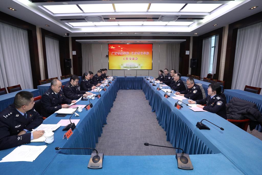 12月18日,广西警察学院副院长李兴林一行6人来鸭脖调研交流。学院党委委员、副院长刘蔚文出席交流会。