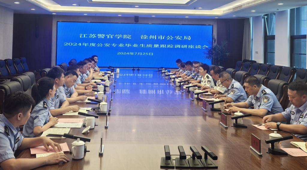 为进一步加强学院人才培养质量监测,探索校局协同育人创新举措,7月24日至26日,学院党委副书记陈卫带领由警体部、教务处和学生处有关同志组成的调研组,赴徐州市公安局开展公安专业毕业生质量跟踪专题调研和警务指挥与战术专业工作调研,期间与市局相关负责同志就构建校局信息反馈平台、丰富校局培训体系、拓宽校局合作领域、创新协同育人机制等进行交流探讨。徐州市副市长、公安局局长杨健,公安局党委副书记、常务副局长李海波,公安局党委委员、政治部主任黄玉柱等领导及相关部门负责同志参加调研交流。