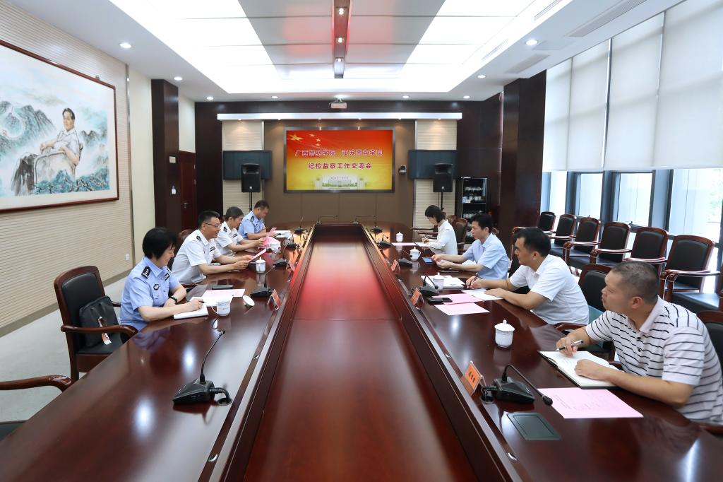 7月9日上午,广西警察学院党委委员、纪委书记黎东一行来学院考察调研。学院党委委员、纪委书记,省监委派驻学院监察专员殷其新出席座谈会。