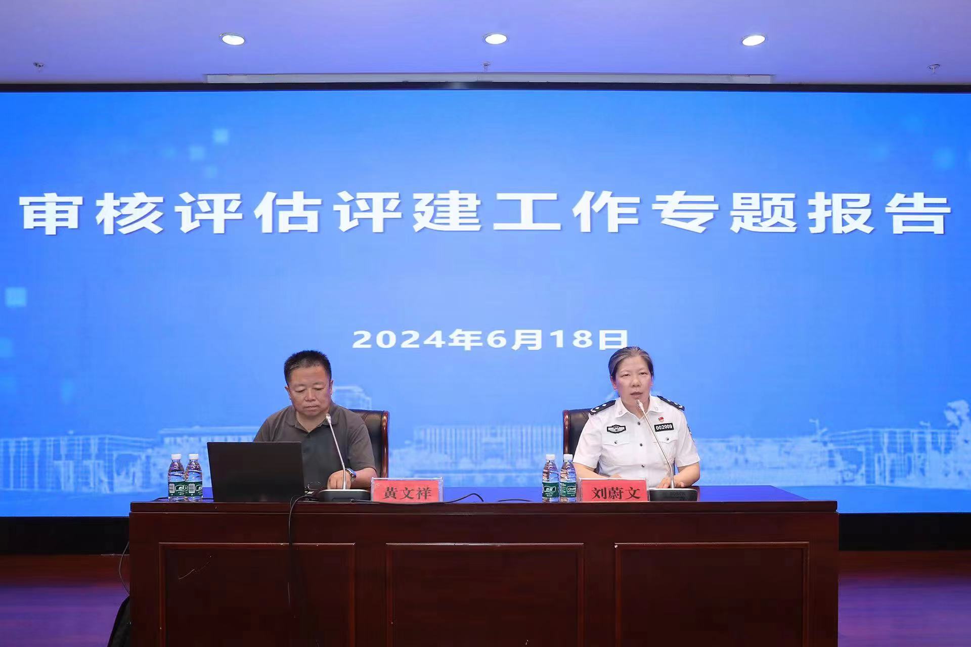 刘蔚文作总结发言,强调全院干部教师要强化“五自”质量文化意识,认真针对目前审核评估工作中已发现的本科教学中心地位体现不足、教学改革的成效有待提高、教育数字化应用不足等共性问题进行自查自纠,切实提升评建质效。