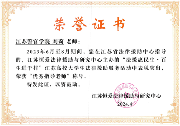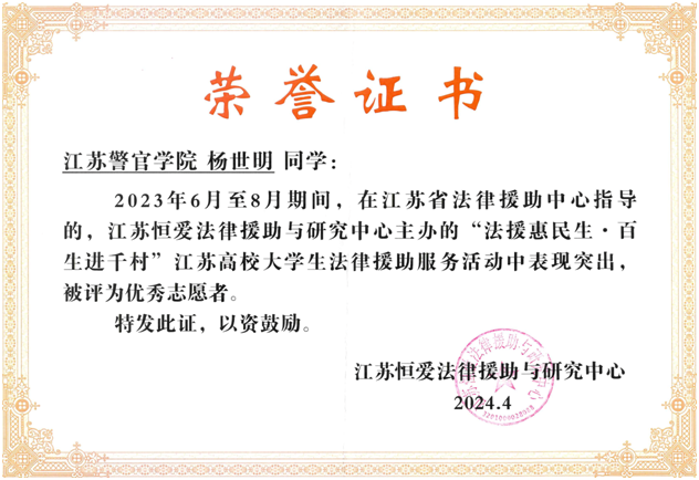 江苏高校“法援惠民生、百生进千村”志愿服务活动,是由江苏恒爱法律援助与研究中心组织实施的暑期法援乡村行活动,旨在以高校大学生暑期社会实践和假期回乡为契机,在全省范围内开展乡村法律援助以及乡村法律服务需求调研。本次活动有南京大学、东南大学等江苏18所高校法学院(系)的189名本科生、研究生参与。本次活动共评出优秀指导教师6人,优秀志愿者28人,优秀调研报告4篇。