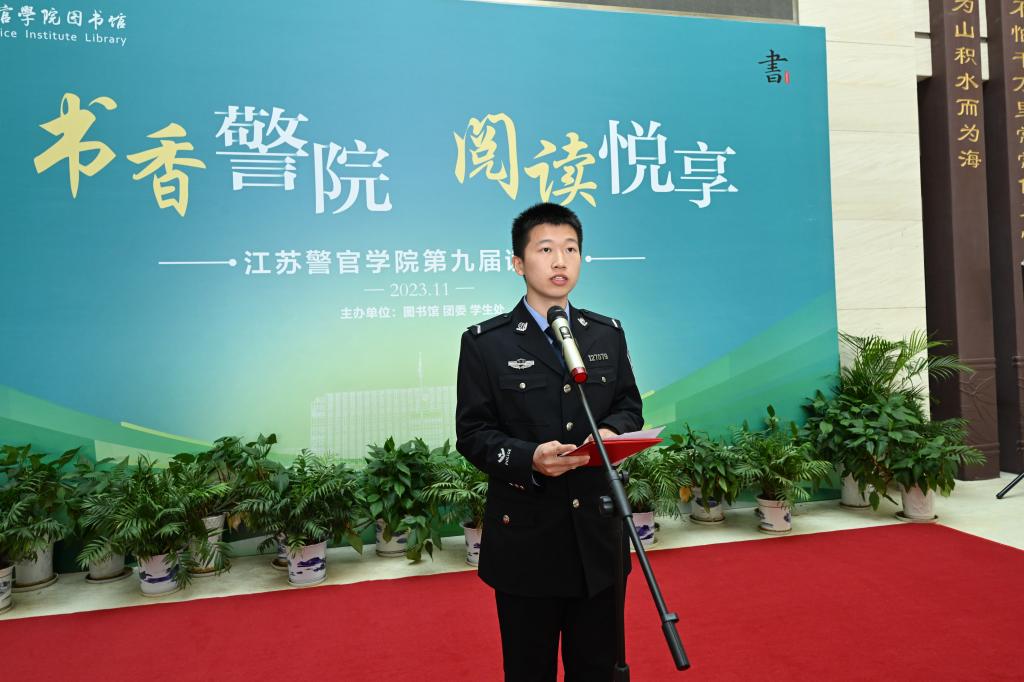 2022级刑技2区队的殷语同学作为读书标兵代表发言,他表示作为新时代的警校生,要充分利用图书馆资源,不断提升人文素养和专业水平,从而更好地适应新时代公安执法工作的需求,实现人生价值。