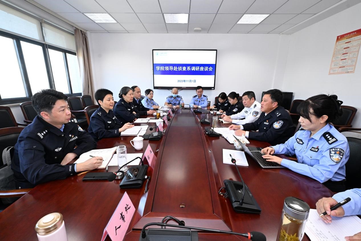 11月1日上午,学院党委副书记陈卫,党委委员、副院长刘蔚文、张敏一行赴侦查系开展走访调研,了解干部队伍、专业和学科建设、人才培养等情况,听取干部教师意见建议,围绕贯彻学院第四次党代会精神、推进学院本科教育教学审核评估评建工作和落实省公安厅政治建设专项督导检查反馈意识整改,研究部署具体举措。