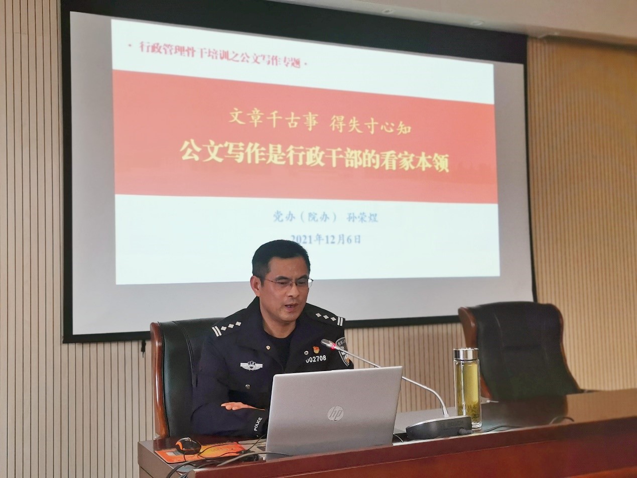 本次培训以提升管理水平与履职能力为重点内容,邀请了中共南京市委党校王建莲教授、徐鸣教授和学院党委办公室孙荣煜政委等校内外专家领导,开设了《领导力与执行力提升》《公务员心理调适》《公文处理规范》等专题讲座。