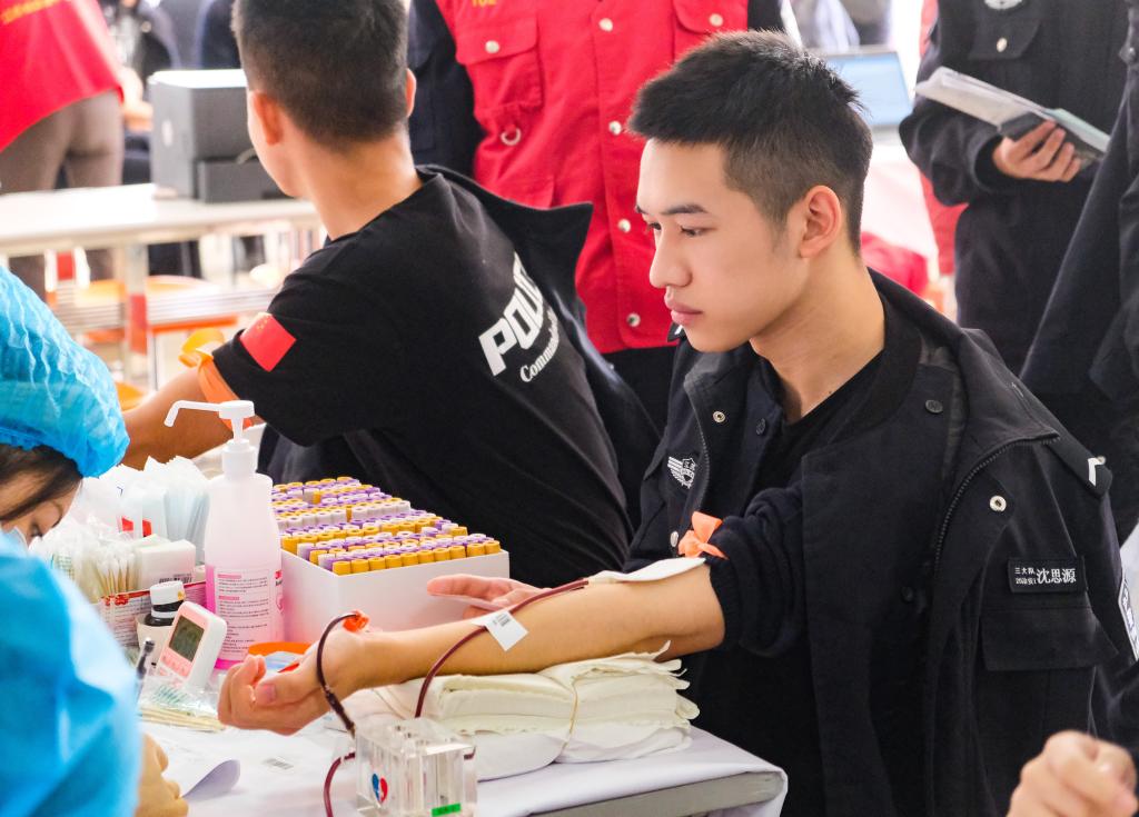 2021年11月13日,学院在浦口校区开展一年一度的无偿献血活动。初冬的寒气抵挡不住预备警官的热情,共有1256名学生积极参加,累计献血总量达344000ml。无偿献血是无私奉献、救死扶伤的崇高行为,也是我国血液事业发展的总方向。学院每年在学生中组织开展无偿献血志愿服务活动,培养广大师生的社会责任意识,弘扬奉献、友爱、互助、进步的志愿服务精神,争创 “我为人人,人人为我”的良好社会氛围。积极参加无偿献血活动,充分彰显了学院师生的忠诚警魂和无悔担当,更好诠释了无私奉献的校训精神,得到了社会各界的一致好评。
