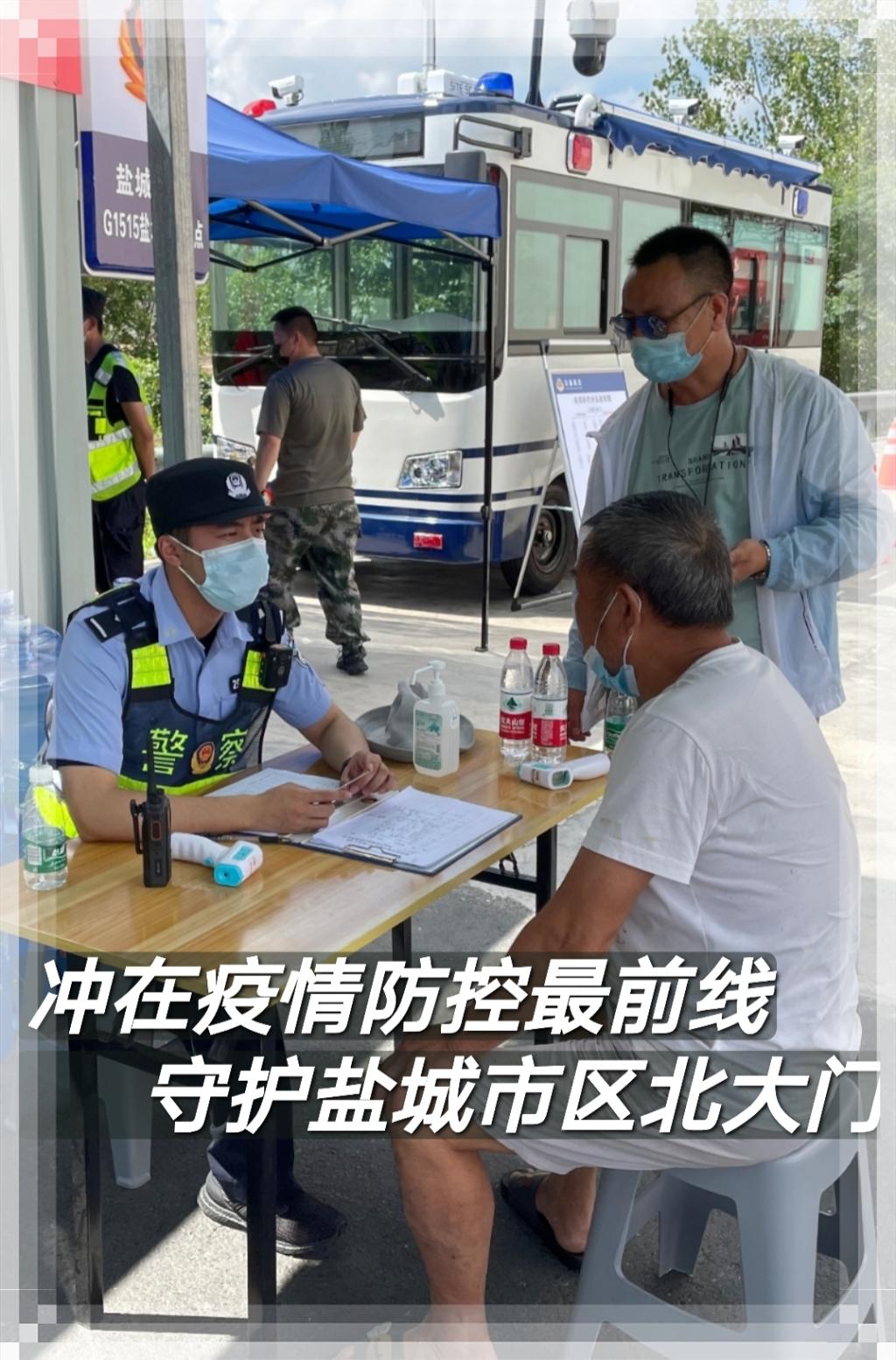 为响应“让党旗飘扬在疫情防控主阵地、让警徽闪耀在阻击战役最前沿”的号召,盐城市公安局办公室民警孙硕璟主动请缨、请求编入市局机关合成行动队,冲锋在疫情防控最前线、守护盐城市区北大门,开展查验身份双码、引导卡口车流、劝返相关人员、讲解政策规定、提醒做好防护、解决群众困难等工作,他用“疫”往无前的勇气诠释了新时代青年民警的责任与担当,让青春在党和人民最需要的地方绽放绚丽之花。