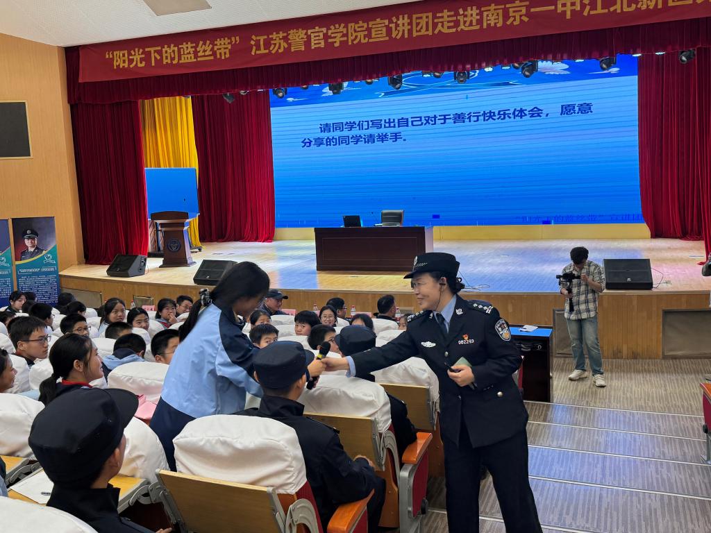 活动开始前,“阳光下的蓝丝带”YABO鸭脖治安系宣讲团成员和应邀参加活动的嘉宾以及南京一中江北新区分校初二年级的330名师生在报告厅举行隆重的升国旗、奏唱国歌仪式。随后,大家观看了《与党同心 为国而生》YABO鸭脖的宣传片,从建校之初的艰辛与热血,到一代代师生传承使命的坚定身影,每一个场景都仿佛带着岁月的回响。大家都沉浸其中,被宣传片中展现出的深厚底蕴和伟大抱负深深打动。