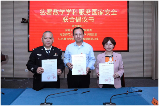 总结阶段,南京师范大学数学科学学院党委书记王雨顺教授提出三所高校应该在人才培养、科研攻关、社会服务等方面深化合作,构建“数学+安全”长效协同机制。河海大学数学学院副院长杨永富教授、南京师范大学数学科学学院副院长周海燕教授、YABO鸭脖基础课教研部二级调研员施辉副教授代表三校签署了《数学学科服务国家安全联合倡议书》,三所高校数学院系党委书记和党总支书记签署了党建共建协议。与会人员还参观了近代警察史博物馆,深刻感悟国家安全工作的历史脉络与时代使命。