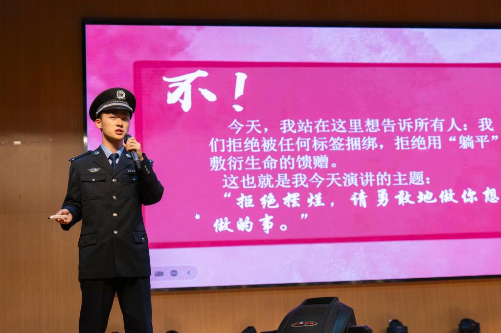 姚奕飏同学结合自己的成长经历,为同学们带来了《因为是少年》的演讲。他鼓励同学们在青春时光里勇敢追梦、拒绝摆烂,把握青春的试错成本,赢得台下阵阵掌声。