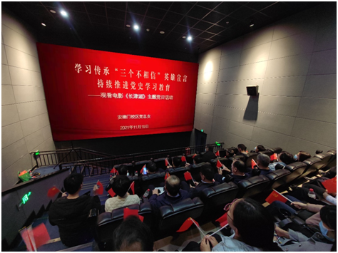泰兴是中国人民解放军全国战斗英雄、中国人民志愿军特等功臣和特级战斗英雄杨根思的故乡。为践行英雄宣言,赓续红色血脉,全体党员集体观看了电影《长津湖》,深刻认识“抗美援朝”战争的历史意义,时刻铭记革命前辈的家国情怀,感悟“三个不相信”穿越时空、历久弥新的精神伟力。