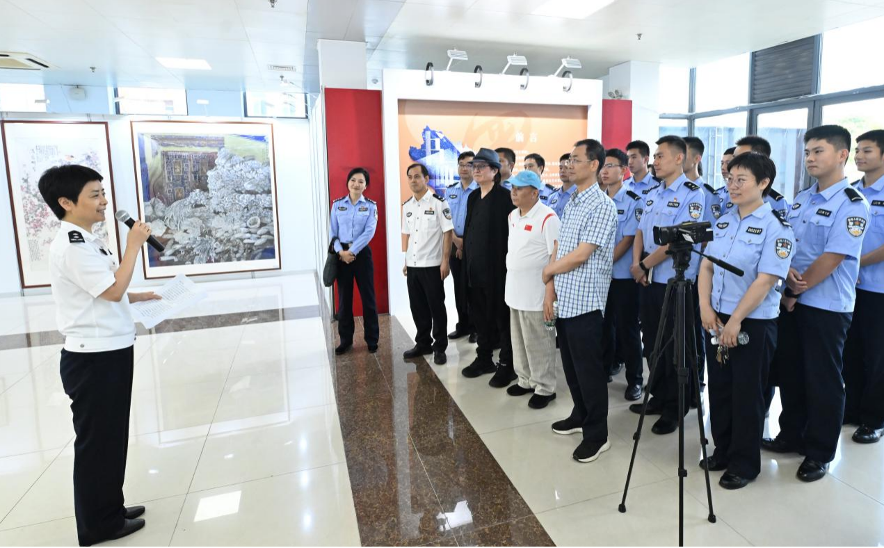 两位老师参观了英模校友展、校史馆等,对鸭脖宣传思想文化工作给予充分褒奖,有感于公安文化鲜明特色,现场即兴示范创作了书法作品,并将墨宝赠与学院。对学院举办主题书画摄影展打造“艺术思政实践课堂”给予高度评价,认为师生作品有内涵、有特色、有创意,不乏佳作,很好展示了警察精神和警营风貌,是美育育警不可或缺的阵地和方式。