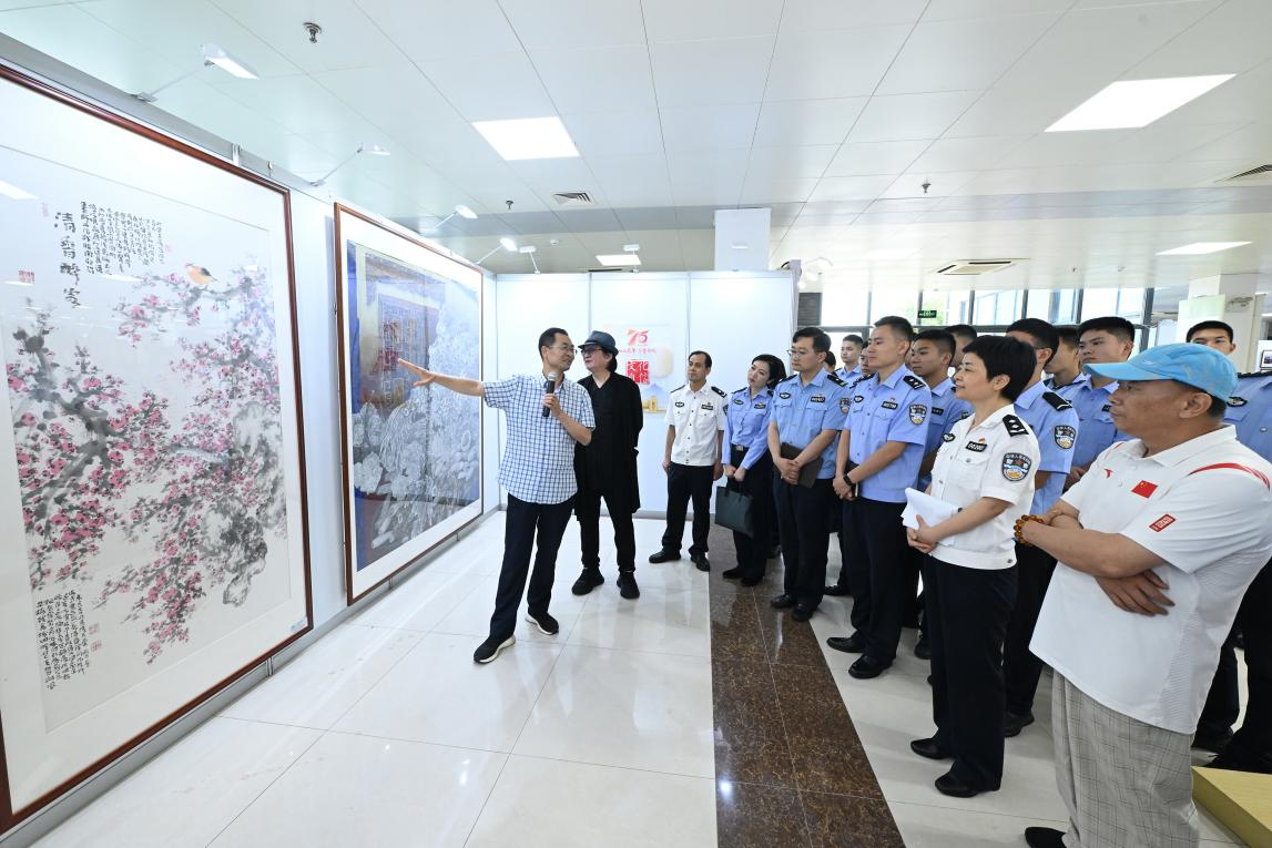 学院党委副书记陈卫主持讲堂时指出,文化是一个国家、一个民族的根和魂,也是凝聚公安队伍战斗力的根和魂。中国画以形写神,赵老师的作品让我们看到了人民富足、学院人才培养硕果累累,一笔一画追求美的细致、精致、极致,体现了大国工匠精神和人民警察应有的作风。中国画诗意在画外,韩老师的梅花图展现了石的坚韧、花的风骨,与公安队伍的气质高度契合。指出学院高度重视文化育警,努力打造艺术思政精品,勉励师生在艺术思政中感悟文化自信的力量,为中华优秀文化传承创新做出公安贡献。