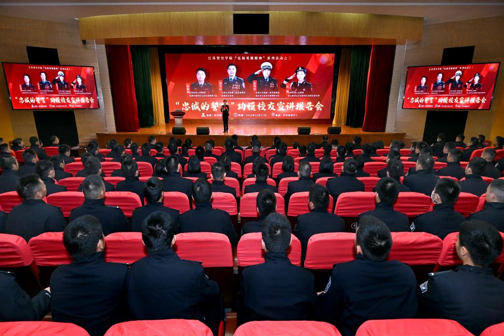 为深入学习贯彻习近平总书记给中国人民公安大学在读英烈子女重要回信精神,弘扬英烈精神、铸牢忠诚警魂,11月17日下午,学院邀请全国公安系统二级英雄模范、高邮市公安局副局长刘玉山,全国公安系统二级英雄模范、宿迁市公安局交通警察支队二大队巡逻二中队中队长张亮亮,全国优秀人民警察、南通市通州区公安局刑警大队副大队长张继秋,全国优秀人民警察、连云港市公安局海州分局新东派出所户政副所长孔静4位英模校友来校,开展“弘扬英烈精神”英模进校园宣讲会暨“功模校友面对面”活动。学院党委副书记陈卫参加活动,与4位英模校友及YABO鸭脖小记者团学生代表交流了从学警成长为公安英模需付出的努力与艰辛,讨论了如何更好讲述警察故事、发好公安声音的宣传方法,勉励学警以英模为榜样,立志做有理想、敢担当、能吃苦、肯奋斗的新时代好青年好警察。